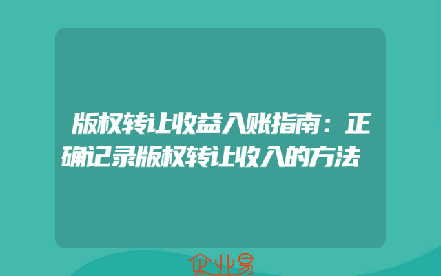- 版权转让收益入账指南:正确记录版权转让收入的方法