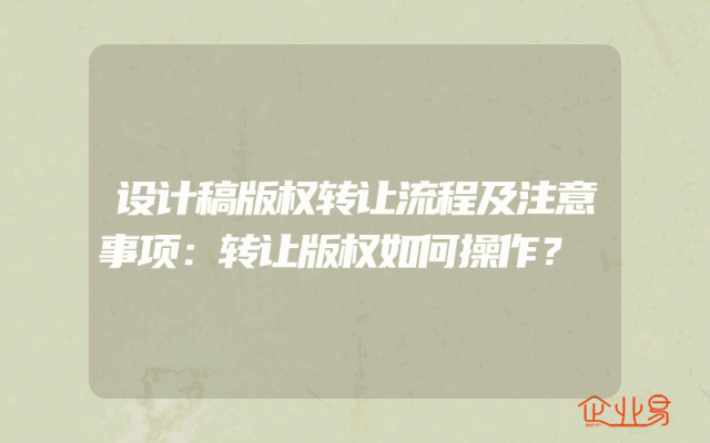 - 设计稿版权转让流程及注意事项:转让版权如何操作?