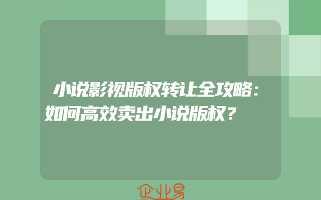 - 小说影视版权转让全攻略:如何高效卖出小说版权?