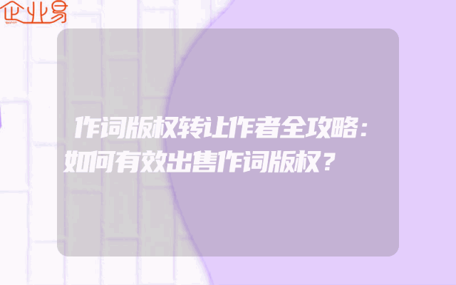 - 作词版权转让作者全攻略:如何有效出售作词版权?