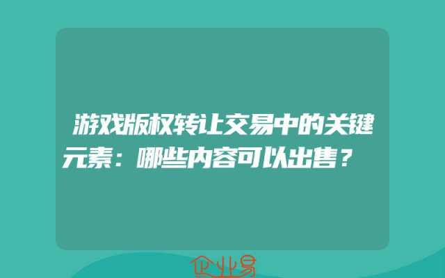 - 游戏版权转让交易中的关键元素:哪些内容可以出售?