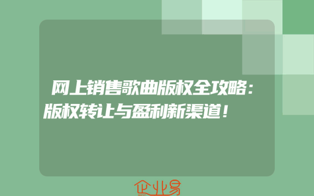- 网上销售歌曲版权全攻略:版权转让与盈利新渠道!