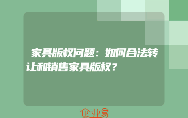 - 家具版权问题解析:如何合法转让和销售家具版权?一、了解家具版权基本概念在探讨如何合法转让和销售家具版权之前,我们首先需要了解家具版权的基本概念。版权,也称著作权,是指创作者对其创作的文学、艺术和科学作品所享有的专有权利。在家具设计和制造领域