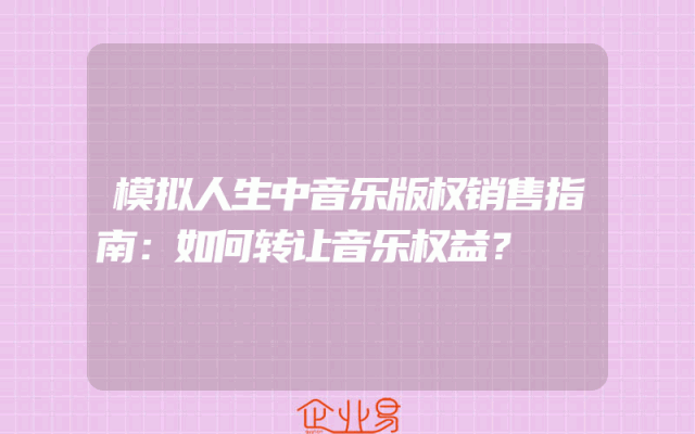 - 模拟人生中音乐版权销售指南:如何转让音乐权益?
