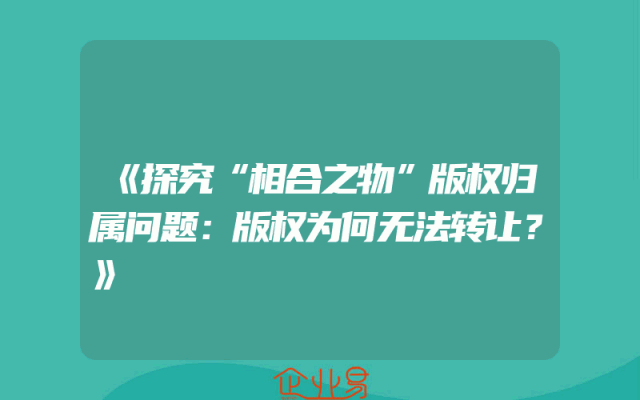 - 《探究“相合之物”版权归属问题:版权为何无法转让?》