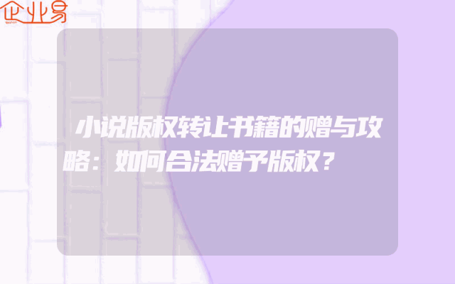 - 小说版权转让书籍的赠与攻略:如何合法赠予版权?一、了解版权转让的基本知识在探讨如何合法赠予版权之前,我们必须对版权转让有一个基本的了解。版权,即著作权,是知识产权的一种,涉及创作作品的作者对其作品享有的专有权利。版权转让是指版权所有者将其享