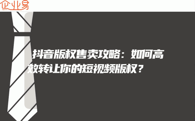 - 抖音版权售卖攻略:如何高效转让你的短视频版权?