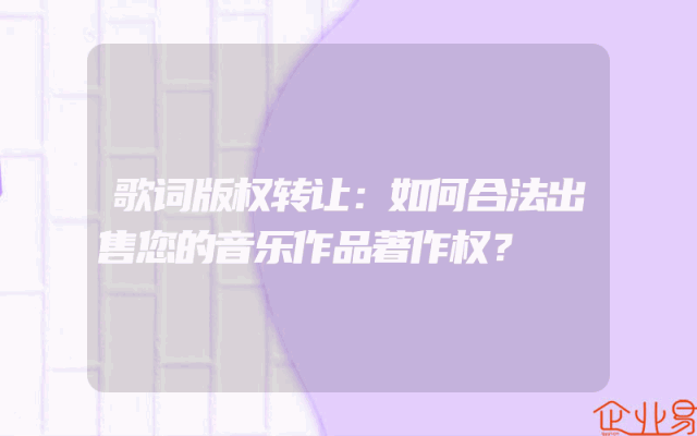 - 歌词版权转让:如何合法出售您的音乐作品著作权?