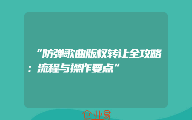 - “防弹歌曲版权转让全攻略:流程与操作要点”