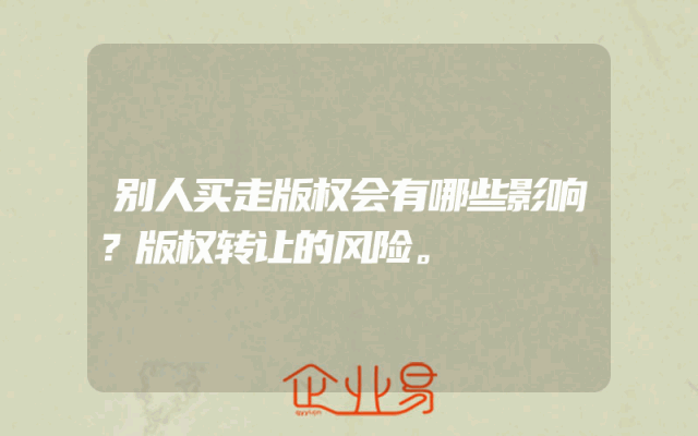 - 别人买走版权会有哪些影响?版权转让的风险。