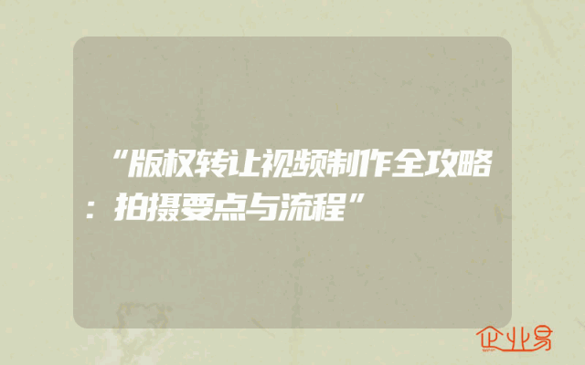 - “版权转让视频制作全攻略:拍摄要点与流程”