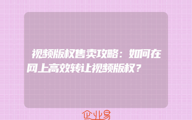 - 视频版权售卖攻略:如何在网上高效转让视频版权?