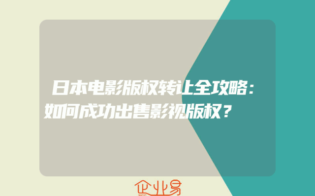 - 日本电影版权转让全攻略:如何成功出售影视版权?