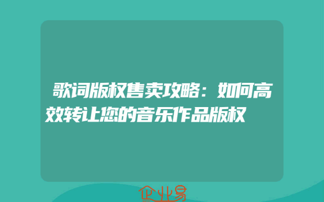 - 歌词版权售卖攻略:如何高效转让您的音乐作品版权