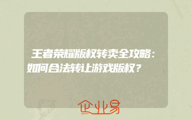- 王者荣耀版权转卖全攻略:如何合法转让游戏版权?