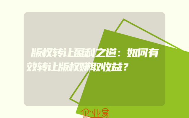 - 版权转让盈利之道:如何有效转让版权赚取收益?