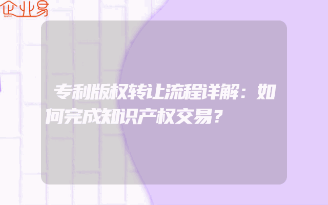 - 专利版权转让流程详解:如何完成知识产权交易?
