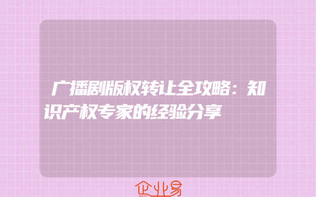 - 广播剧版权转让全攻略:知识产权专家的经验分享
