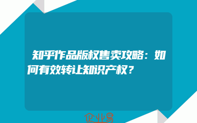 - 知乎作品版权售卖攻略:如何有效转让知识产权?一、了解知识产权在探讨如何有效转让知识产权之前,我们必须先对知识产权有一个清晰的认识。知识产权是指人们对创造性智力成果所享有的法律权利,包括专利、商标、著作权等。对于知乎作品来说,作者的创作内容如