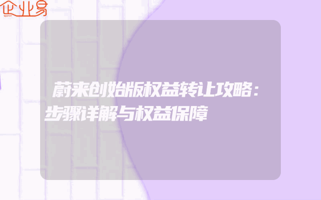 - 蔚来创始版权益转让攻略:步骤详解与权益保障