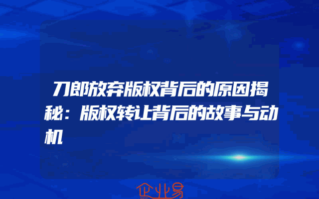 - 刀郎放弃版权背后的原因揭秘:版权转让背后的故事与动机一、引言近年来,音乐界频频传出音乐人放弃版权的风波,其中刀郎放弃版权事件引起了广泛关注。此举背后隐藏着怎样的故事和动机?本文将从多角度深入分析。