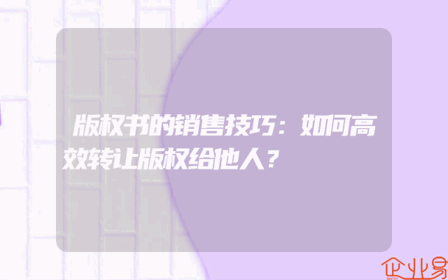 - 版权书的销售技巧:如何高效转让版权给他人?