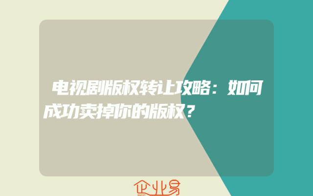 - 电视剧版权转让攻略:如何成功卖掉你的版权?
