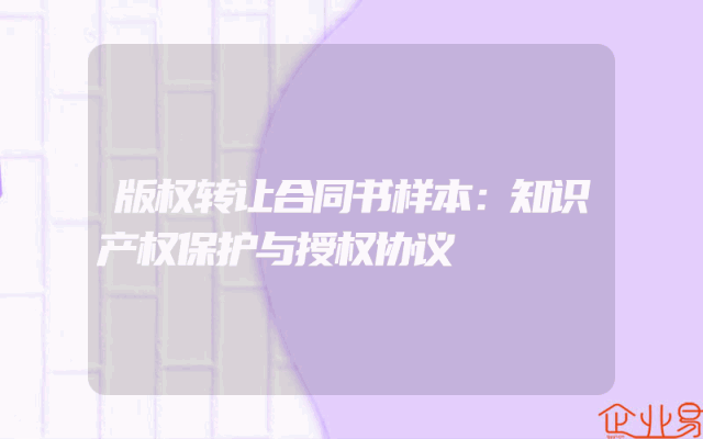 - 版权转让合同书样本:知识产权保护与授权协议