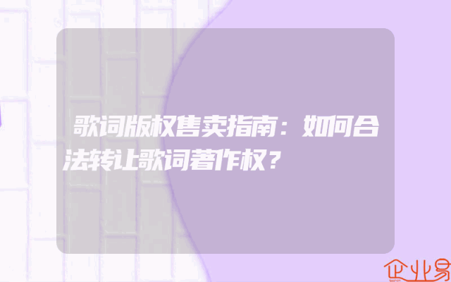 - 歌词版权售卖指南:如何合法转让歌词著作权?