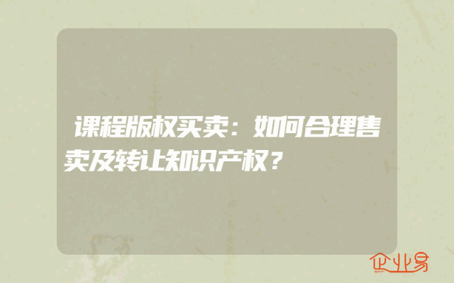 - 课程版权买卖:如何合理售卖及转让知识产权?