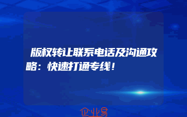 - 版权转让联系电话及沟通攻略:快速打通专线!