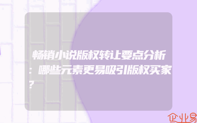 - 畅销小说版权转让要点分析:哪些元素更易吸引版权买家?