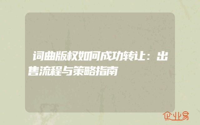 - 词曲版权如何成功转让:出售流程与策略指南