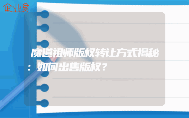 - 魔道祖师版权转让方式揭秘:如何出售版权?