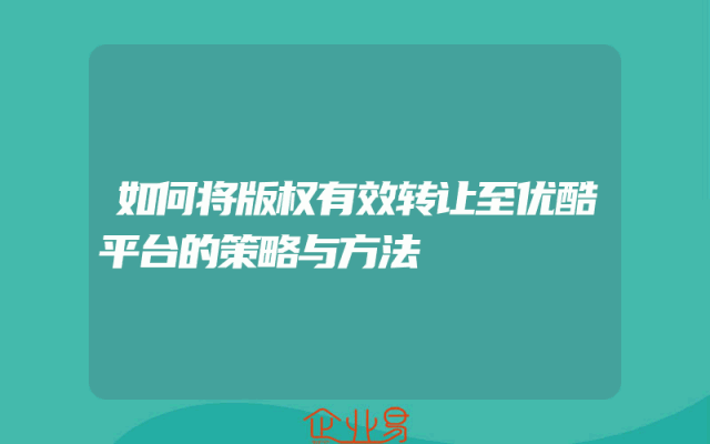 - 如何将版权有效转让至优酷平台的策略与方法