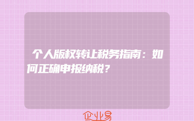 - 个人版权转让税务指南:如何正确申报纳税?