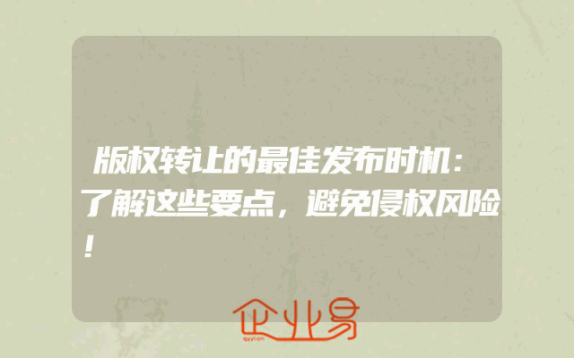 - 版权转让的最佳发布时机:了解这些要点,避免侵权风险!