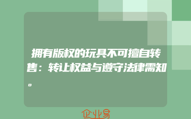 - 拥有版权的玩具不可擅自转售:转让权益与遵守法律需知。