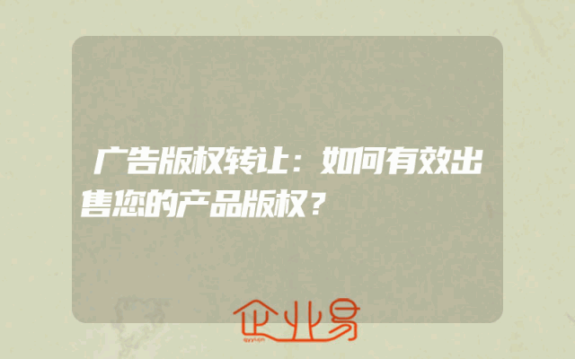 - 广告版权转让:如何有效出售您的产品版权?了解版权及其价值在现代社会,版权作为知识产权的一种重要形式,对于创作者来说具有巨大的价值。想要有效出售产品版权,首先需深入理解版权的概念及其涵盖的范围。版权涉及创作作品的独享权利,包括但不限于文学、艺
