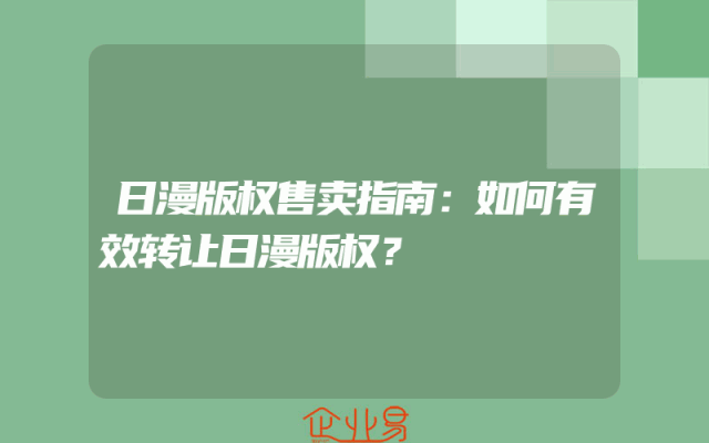 - 日漫版权售卖指南:如何有效转让日漫版权?