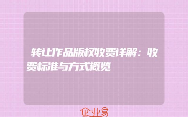 - 转让作品版权收费详解:收费标准与方式概览一、作品版权转让收费概述在知识产权领域,作品版权的转让是一项重要的商业活动。转让过程中,版权所有者会按照一定的标准和方式收取费用。这些费用涉及的因素众多,包括作品的类型、知名度、商业价值等。了解版权转