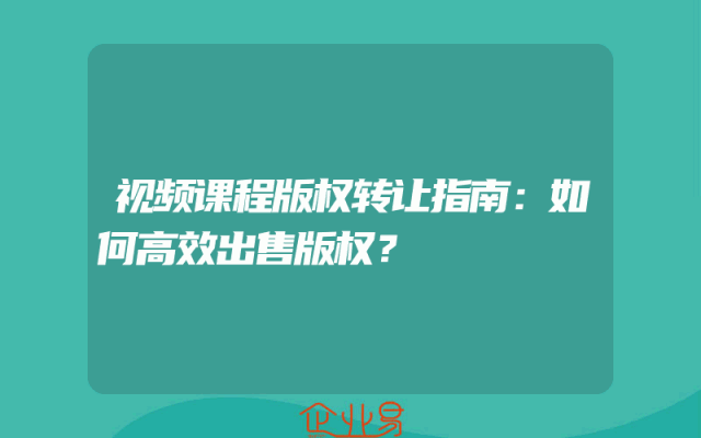 - 视频课程版权转让指南:如何高效出售版权?一、了解版权及其价值在出售视频课程版权之前,首先要明白版权的基本含义和它所包含的价值。版权,通常指创作者对其创作的文学、艺术和科学作品所拥有的专有权利。对于视频课程来说,版权涵盖了教学材料、教学方法、