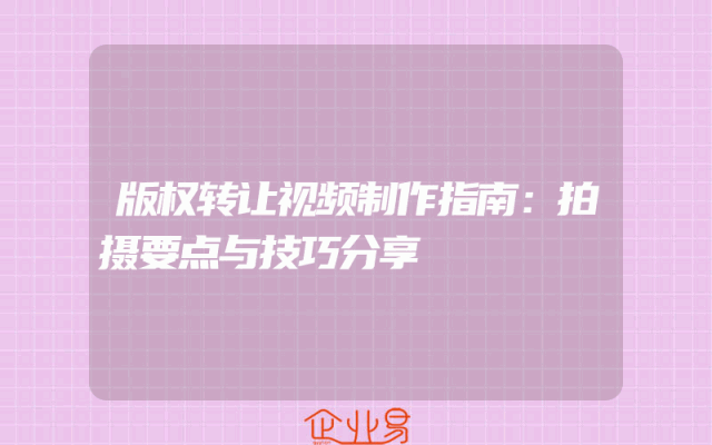 - 版权转让视频制作指南:拍摄要点与技巧分享
