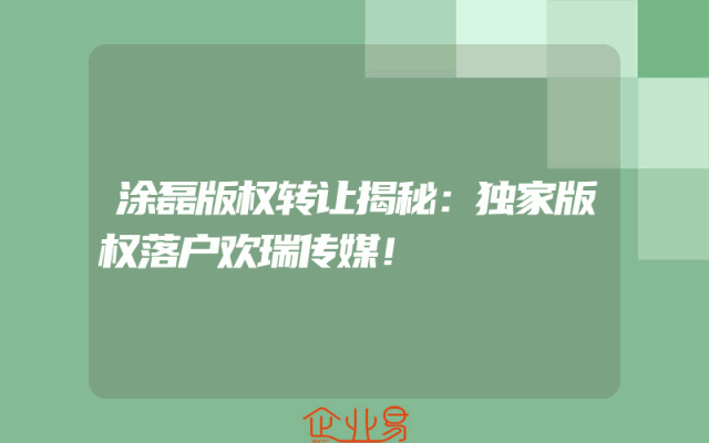 - 涂磊版权转让揭秘:独家版权落户欢瑞传媒!一、版权转让背后的故事近年来,随着知识产权意识的逐渐增强,版权转让成为行业内备受关注的话题。最近,有关涂磊版权转让的消息引起了公众的广泛关注,尤其是其独家版权落户欢瑞传媒的消息更是引起了热议。那么,这