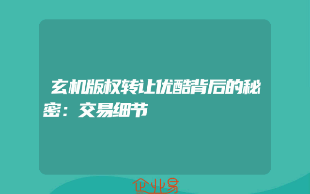 - 玄机版权转让优酷背后的秘密:交易细节解析版权市场的新动态随着文化产业的飞速发展,版权转让已经成为行业内常见的合作模式之一。近日,玄机版权转让给优酷一事引发了业界关注。这不仅仅是一次简单的版权交易,更牵扯到背后的一系列商业逻辑与市场考