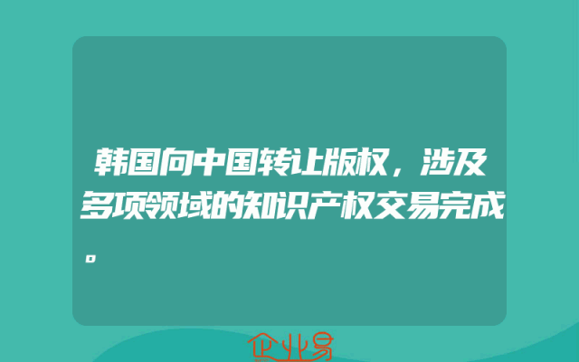- 韩国向中国转让版权,涉及多项领域的知识产权交易完成。