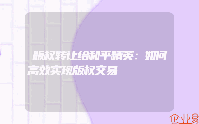 - 版权转让给和平精英:如何高效实现版权交易