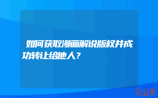- 如何获取漫画解说版权并成功转让给他人?
