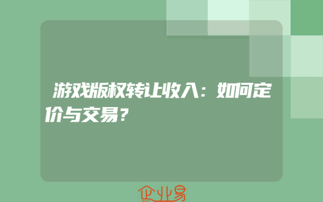 - 游戏版权转让收入:如何定价与交易?