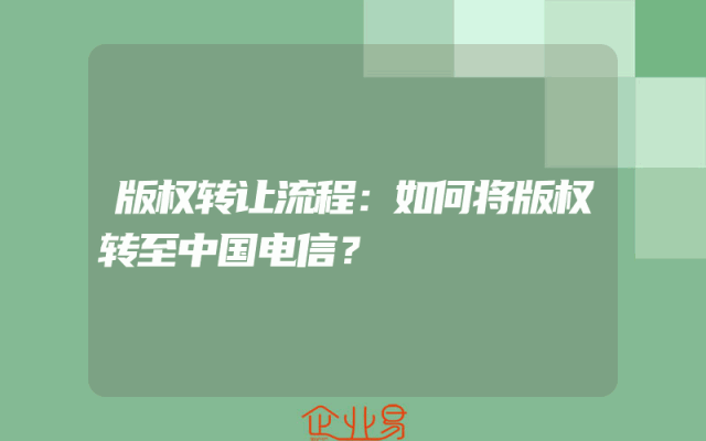 - 版权转让流程:如何将版权转至中国电信?